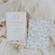 ReEmergency Era Monogram Himmel Blue Vapensköld, bröllopsinbjudan. Vintagen inspirerade ReEmergency-Era baroque line art monogram vapensköld. Funktioner, en elegant himmel blå färg-typografi utformar stil blandning av skript och fet text. Kinoiserie stil trädgården mönster.