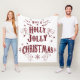 A vintage typography illustration with the words "Have a holly jolly Christmas", with flowers and snowflakes around.