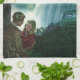 Vintage illustrerar bilden av kärlek och romantik med ett ungt gift par på deras smekmånad av Niagara Falls. En romantisk kväll nära vattenfallet under månljuset av fullt måne.