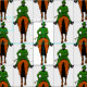 Vintage illustration av en kvinna som rider en häst. Baksidan och kvinnan jackar en grönt.