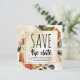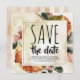 Vackra höstblommor ramar in din förfrågan om att spara datumet. Den krämiga akvarelltvätten ger den en traditionell vintage-känsla, medan de moderna teckensnitten håller den fräsch och trendig. De djupa rödbruna, orange, lila och olivgröna nyanserna kompletterar den elfenbensvita bakgrunden. Vacker fyrkantig design. Era namn, bröllopsdatum, plats och information om bröllopswebbplatsen ingår.