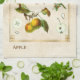 Vintage Illustration Apple Fruit Botanical Blommig Kökshandduk