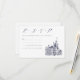 Detta formella RSVP-kort har en vintageillustration av ett slott, som du kan ersätta med en bild av din bröllopslokal (transparent eller vit bakgrund föredras). Elegant mörkblå text anger titeln, om gästen kommer att acceptera eller avböja, och datumet som de senast ska svara. Baksidan har en rad där du kan skriva gästens nummer (vilket är användbart när du håller reda på många RSVP-svar). Bläddra bland min kollektion för att hitta den matchande inbjudan. ••• För fler klassiska brölloppsvarianter, besök min butik Zazzle.com/EventsByJessicaAmber ••• För specialbeställningar, skicka ett meddelande till mig på Zazzle