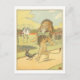 Det här vykortet innehåller en illustration av vintage/återcirkel för barn i bok som visar en lejon början med en gigantisk skål.