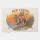 Vintage-illustration cigarrettetikett produktannonsering konst med en stolt indian-krigare hövding. Denna modige man sitter på en brokig häst i sydvästra öknen iförd en traditionell fjäderprydnad. Antik reklam för Red Cloud-cigarretter, hög kvalitet, handgjorda.