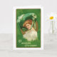 Vacker, gammaldags bild av en irländsk dam med grönt för St. Patricks dag, finns på detta vykort. Framsidan av kortet lyder "Att bära det gröna" och inuti kortet står "Och må din St. Patricks dag vara full av irländska välsignelser också"! Ett underbart kort att skicka till familj och vänner under högtiden.