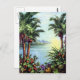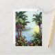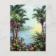 En vintage i offentlig regi på en ö med handflatan träd, blommor, havs och soluppgång eller solnedgång från ett barns bibelstorybok.