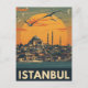 En resa till hjärtat av Turkiet med denna vackra vintage-stil poster. Utformningen ger en häpnadsväckande illustration av Istanbul-skylten, inklusive historiska moskéer och kusin, som ställs mot ett träsksolnedgång och en flock med fiskmås som skjuter över huvudet. Denna poster är en perfekt biet av väggkonst för reseentusiaster, fläkt av klassisk design, eller någon som drömmer om att besöka denna pulserande stad där Öster möter Väster.