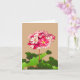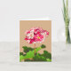 Kort i en vintage japansk illustration av en enda rosa vattenfri blomma, accentuerad med vitt, och löv i emerald och kalkgrön, på en beige bakgrund, med anpassade inuti hälsning