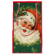 Vintagebilden av en jolly Santa presenteras på bekläda, och baksida av denna gåva hänger lös. Denna färgrika gåva hänger lös är perfekt för mycket litet till lilla storleka gåvor. Denna design är också tillgänglig som en hjärtformade klistermärke, kaffemuggen, gåvan som slår in papper, rundaklistermärke och en julkort.
