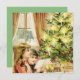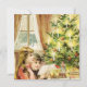 Inbjudan till anpassningsbar/meddelande med illustration av vintagen . Barnen står och läser av ett dekorerat Julgran ... Se matchande porto