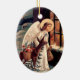 Denna årgång av julprydnad visar en ängel från himlen med lite hjort med julklappar tittar i fönstret vid jul-Kväll för att skapa fred och god vilja.