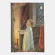 Vintage illustration Viktorian God jul helgdag design med en ung pojke eller flicka som blir varm av den häftiga branden i eldstaden på julgranen Kväll. Barnet väntar på att Jultomten ska kom ner på skorsten ta med sig leksaker. Månljuset lyser på det nya fallna snö på vintern och genom fönstret. Säsongens hälsningar!