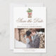 Den här årshelgen Rädda fotoinbjudan från Datumfoto har en vacker nostalgisk helgdag inslagen i en feg röd båge under grönt gräs löv. Elegantens kursivt skript i gammaldags brun typografi för en traditionell brud och groom på vintern. Lägg till foto 2:a förlovningen i vågrät på baksidan.