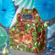 Mönster skildrar fåglar sitta på grenar med snö vid holländen och med kontur och dekorativ faux-foil linjer i guld på mörkens röda bakgrund. Du kan ändra bakgrunden i färg genom att klicka på knappen "Anpassa" och sedan på inskriften "Klicka för att anpassa ytterligare".