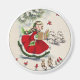 Vintage jul Girl sjunger jul Sång med kungsfåglar och ekorrar på ett vinterskogsland.