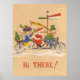 Vintage illustration av God jul helgdag-bilden med ett gult sitta i Jultomten mitt i en trippelcykel med två andra människor. De har alla på sig hattar och väv. Tecknen på den antika lampan står "Lycka till" "Bra Heath" och "Bra Cheer" och texten på grund i bilden lyder "Hej där!" Säsongens hälsningar och Glad helg! Ho, ho, ho!