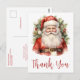 Tack för vykortet med en söt stil-vattenfärgsbild i vintage. Jultomten i sitt röda kostym med jollekinkor och ett leende ansikte. Omgiven av gräs och holly.