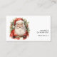 Affärskort med en söt vattenfärgsbild av vintage stil. Jultomten i sitt röda kostym med jollekinkor och ett leende ansikte. Omgiven av gräs och holly.
