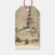 Vintage jul, kyrka i vintersnölandskap presentetikett