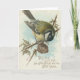 En årgång jul och nyår hälsning med en vacker fågel och pinekon.