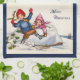 Julduk med två barn som leker i snön i kläder från början av 1900-talet.