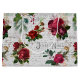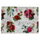 Elegant och mycket detaljerad blommigt av årgången Juli med skarvlös sammansättning som har "Joyeux Noel"-typografi, handskript, portionsgrafik, holly, mistletoe och djupt rött och elfenben ro på åldrasens bakgrund.