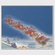 Vintage jul, Santa Flies Sleigh w Reindeer Presentpapper
