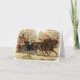 En vintage julkortsbild har en mor och en dotter som går på en sväng, deras lappar täckta med varma filtar. Den smarta chauffören står längst bak i sömnen och vägleder två vackra hästar som är adorerade för helgdagarna. En hund med blå jacka tävling bredvid. Budskapet i kortet är: "Önskar en glad julhelg och ett välmående och friskt nytt år."