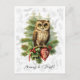 Skicka söta julhälsningar med denna söta vintage vinter scen med en uggla i snön, ett barrträd, en julgransprydnad och järnek. Njut!