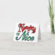 Vintage julillustration med orden "Busig eller snäll" skrivna med röda och gröna julfärgsbokstäver.