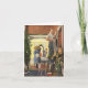 Vintage julillustration som visar en ung flicka som springer genom huset med en stjärna till toppen av julgranen medan hennes far och mor dekorerar huset inför högtiden.