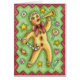 Vintage julillustration Juldesign med en pepparkaksgubbe som blåser i en horn, håller en sockerdrickepinne och omges av godis.