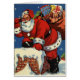 Vintage julillustration bild med jultomten som kliver ner genom skorstenen med en säck full av julpresenter på julafton.