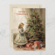 Julvykort hälsning med en vintage av en tjej som dekorerar ett Julgran med inslagna presenter under. Texten säger "God jul", men är anpassadet för ert eget hälsning. Personlig på baksidan med ditt meddelande, med ditt namn och din returadress. Kontakta mig om du behöver hjälp med din anpassning eller om du vill be om ytterligare matchning eller samordning av Zazzle-produkter.
