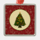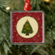 Festive mönster med ett mycket dekorerat Julgran på en gräddbakgrund med röd och gräddtäckande blommigt runt gräns.