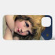 Vintage illustration Viktoriansk julbild med en vacker ängel som vilar på ett moln i himlen. Blå himmel med gyllene stjärnor omger henne.