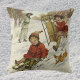 Vintage jul, Viktorian Children Sleding Hund Kudde