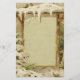 Anpassningsbar som innehåller en grafisk illustration av vintagen från Ungern 1901. Snö täckte gräs träd och en björk. Ett varv i mitten för ditt meddelande .Courtesy of takacsi75