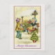 Ett vykort i vintage, ett återskapat och retuscherat antika teckning, med en liten pojke, med helgdag och en liten flicka som säljer julblommor och växter.