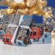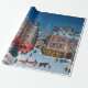 Vintage-julbyn Gamla illustrationer av en utomhusscen vid jul.