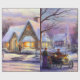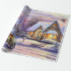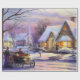 Vintage målning av ett snöbyslandskap vid jul.