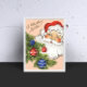 Vintage illustration God jul helgdag med rosyskinka i lycklig, ett vitt fluffskägg och en röd hatt med vackra dekorerade Julgran och glasdekorationer. Säsongens hälsningar med en Hej!