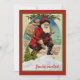 Denna vintage inbjudan med Tomte-design är perfekt för en julfest eller öppen hus-helg. Designen visar en gammal Tomte med sin leksaksåda vid husets skorsten. På baksidan av inbjudan kan du anpassa mallen efter dina festbehov.