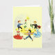 Retro/Vintage julhälsningskort. Bekväma barn som alla klär sig upp och dansar runt ett jätteljus!