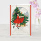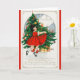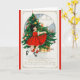 Vintage-julkort med en söt liten flicka framför Julgran.