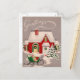 Vintage julhus i snö Hälsningar Julkort. Denna design har en gammal scen med ett dekorerat julhus i snön med ordet hälsningar. Vad en vacker retro julscen.