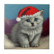 Keramisk plattan med en julkatt med en julhatt! Denna blåögda, grått kattunge finns i fält i snö. En god gåva till julsäsongen och kattälskare!
