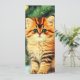 Kort med en årgång julkatt! En orange kattunge med svart rand ligger i snö. Bakom katten finns en Julgran med röda och gult prydnadsämnen. Även på snö är en röd present. En perfekt till julsäsongen och kattälskare!