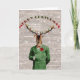 Mycket dövördnad julrenstag. I en vintage kostym, där ljus under julen var på renborrarna. Vintage-juldesignen görs på en antika ordlistebakgrund. I bakgrunden är snöflingor jul. Renarna görs i en förändrad konstgjord vintage stil.